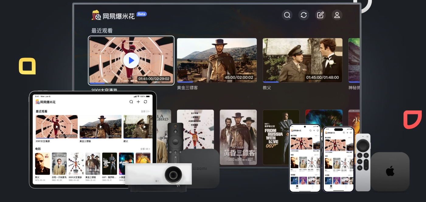 你可以把网易爆米花看作一个专为你个人视频收藏打造的“智能管家”和“万能播放器”。 它最大的本事,就是能把你散落在电脑硬盘、各种网盘(如阿里云盘、百度网盘)甚至家庭NAS(通过WebDAV/SMB协议)里的视频,全部聚合到一个统一的、美观的界面上来管理,并且智能识别、匹配海报和简介,打造一面属于你的私人“海报墙”。 支持网盘 直连 Emby、阿里云盘、百度网盘、115网盘、天翼云盘、中国移动云盘、123云盘,支持 WebDAV、飞牛影视SMB、Jellyfin、Emby协议,轻松导入你所有来源的影片。后面会更新支持夸克网盘 支持全平台 :iOS Android安卓 Android TV Apple TV macOS Windows 网盘下载地址: